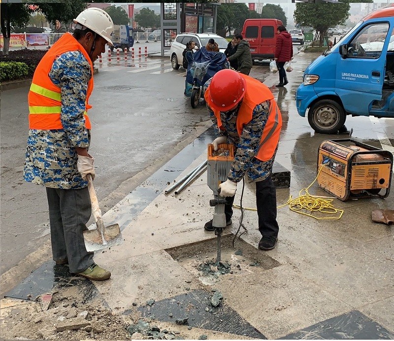 在雨中施工