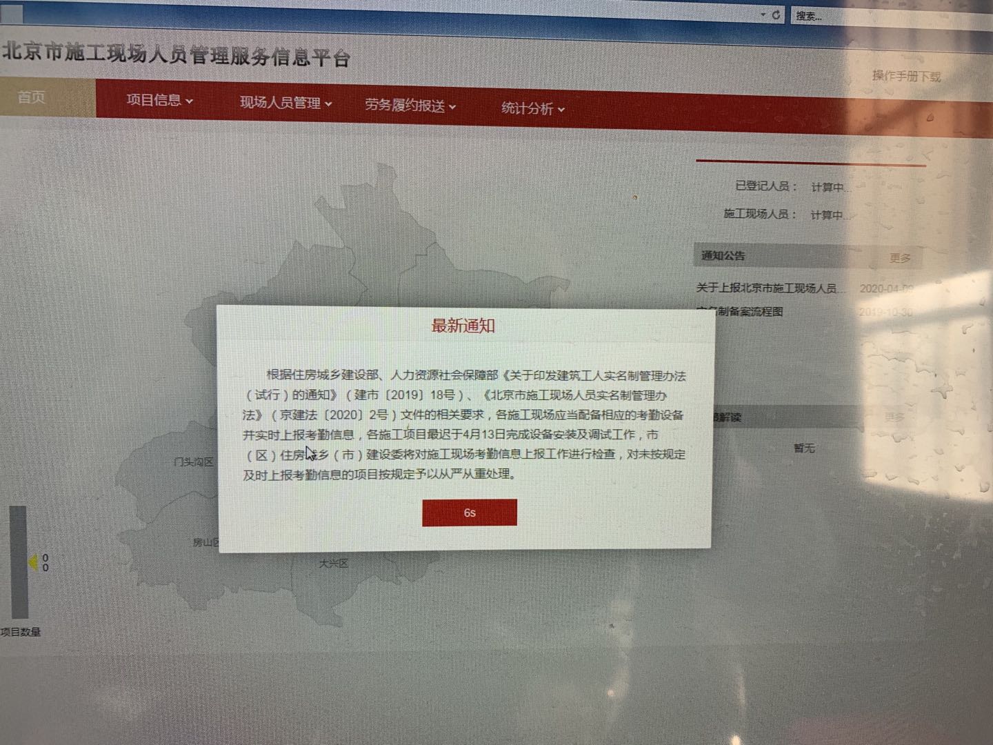 根據(jù)住房城鄉(xiāng)建設部、人力資源社會保障部《關于印發(fā)建筑工人實名制管理辦法(試行)的通知》(建市【2019】18),《北京市施工現(xiàn)場人員實名制管理辦法》(京建法【2020】2號)文件的相關要求,各施工現(xiàn)場應當配備相應的考勤設備并及時上報考勤信息。
